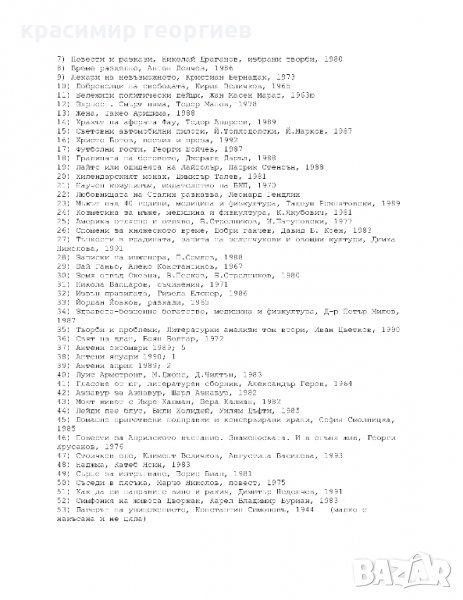 Предлагам голямо разнообразие от книги. Всички са запазени, а голяма част напълни като нови. Пълният списък и снимки са публикувани и прикачени. За повече конкретна информация пишете към обявата в сайта.