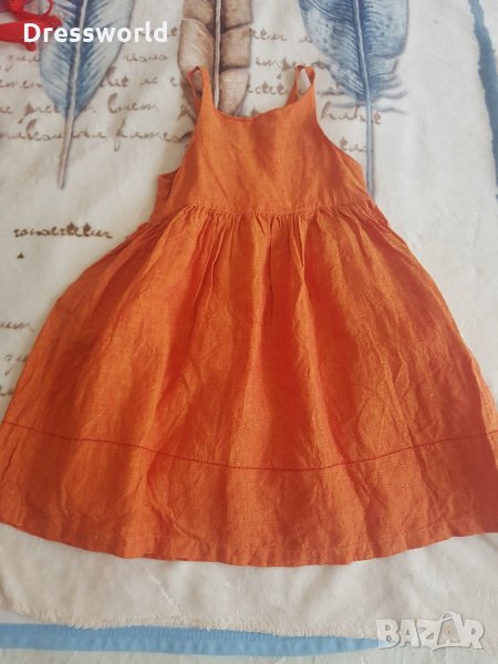 Нова, лятна, оранжева детска рокля за възраст 3 - 4 години, за ръст 98 - 104 см, роклята е маркова, на Kenzo, изпрана е, но не е обличана изобщо.