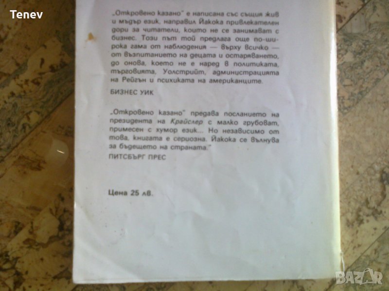 Книга "Откровено казано" Ли Йакока → Обява 29427479