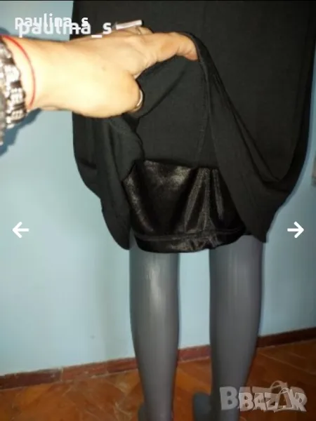 Моделът е разчупен и асиметричен в предната част, има и хастар. Отстрани се закопчава със скрит цип. Поради голямата еластичност, покрива няколко размера, манекенът е малък размер и не стои подобаващо. Роклята е нова!