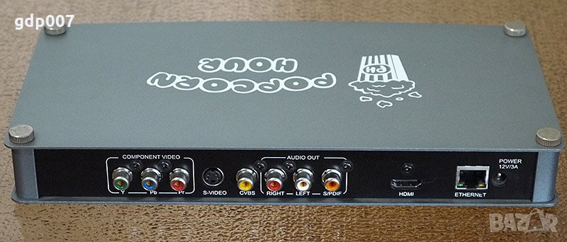 Продавам медия плеър Popcorn A-100 с оригиналното дистанционно устройство. Плеърът и дистационното са в много добро козметично състояние и напълно работещи. Защитната лепенка все още не е свалена от лицевия панел. Мрежовият адаптер (12V/1.5A) не е оригинален, но захранва без проблеми плеъра. Ако в плеъра се монтира хард диск, възможно е да се наложи ползването на по-мощно захранване.