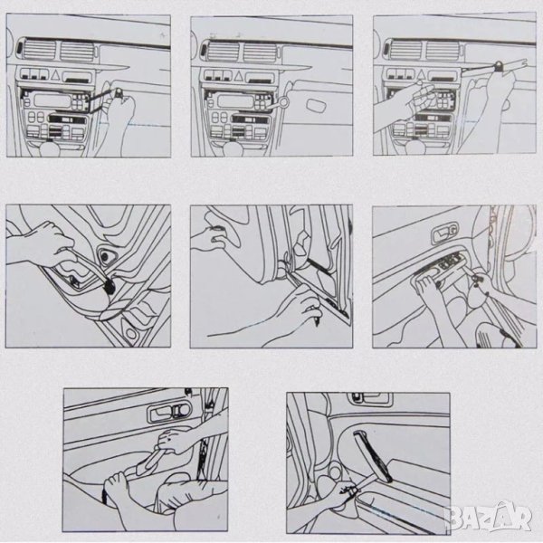 12 бр. практични инструменти за монтаж и демонтаж на автомобилно радио и интериорни детайли по автомобила.