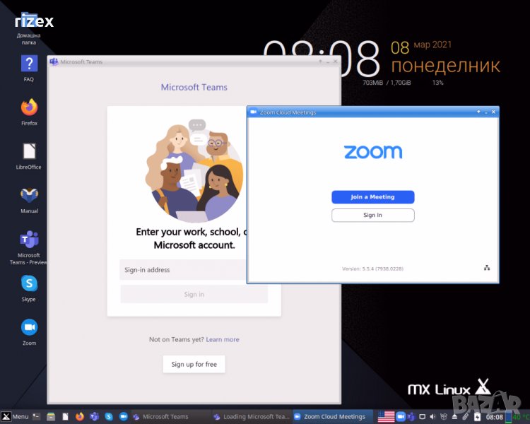 Zoom, Skype for desktop, Microsoft Teams, Telegram, Signal, са инсталирани и готови за работа - въвеждате си само потребителя и паролата и започвате - както казват американците "Out of the Box".
