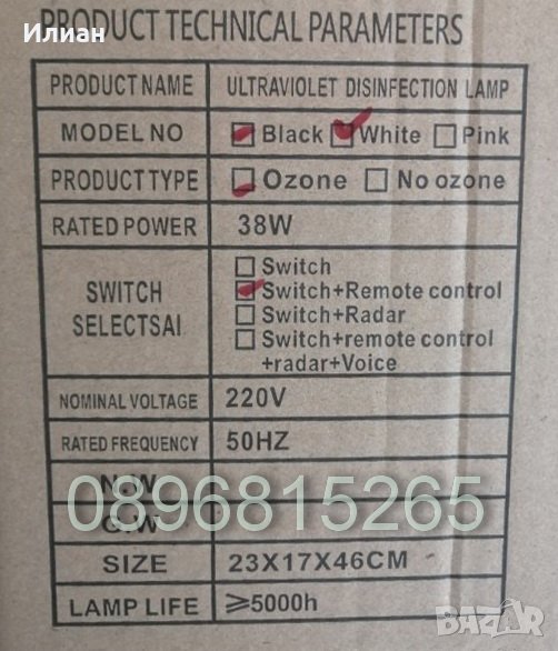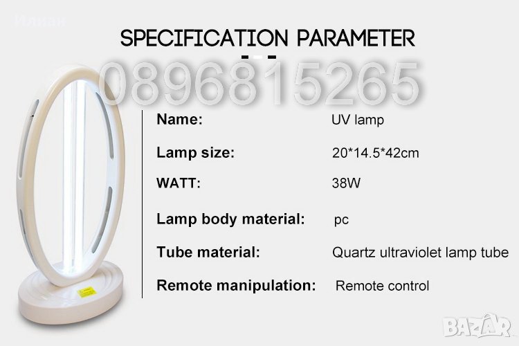 Внимания: Докато лампата е включена,не трябва да има хора в стаята.Пазете от ултравиолетовите лъчи кожата, растения и домашни животни.