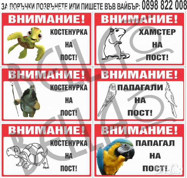Всякакви табели за животни.