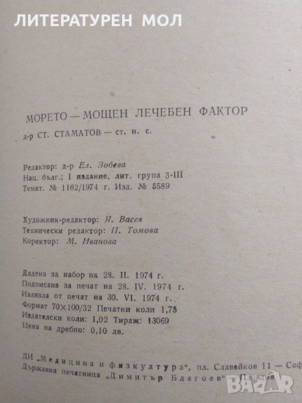 Морето - мощен лечебен фактор Стамат Стаматов 1974 г. → Обява 29445680