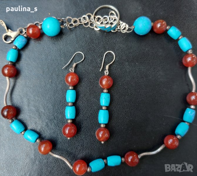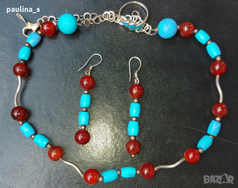 1️⃣. Винтидж! Стар комплект сребърни бижута с камъни - карнеол и тюркоаз. Не се продава на грамаж! Цената е крайна, без пазарлъци!