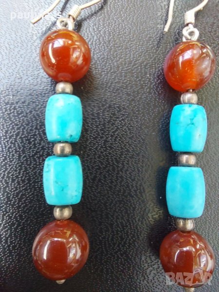 Винтидж / Сребърен комплект с натурални камъни - карнеол и тюркоаз - проба 925