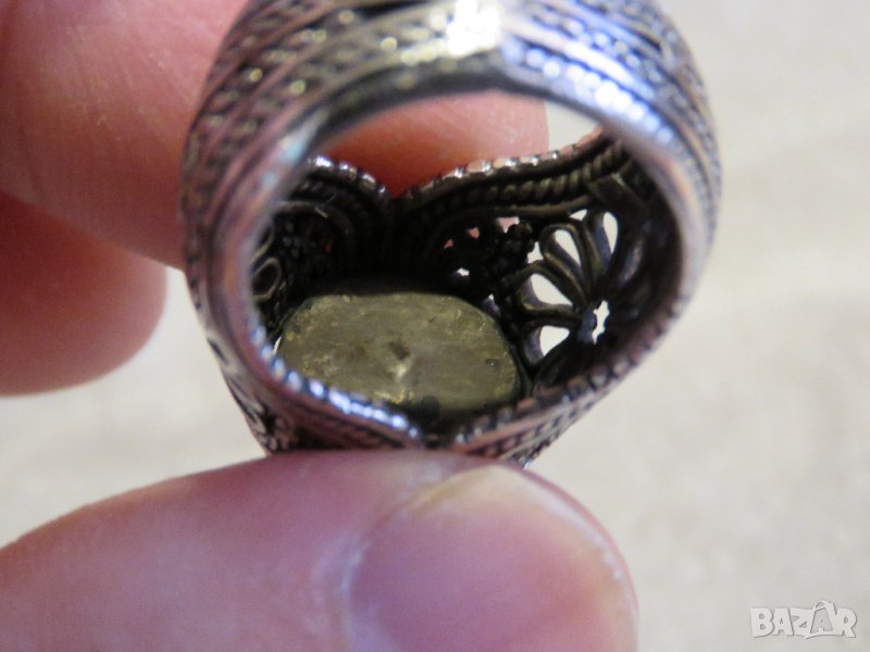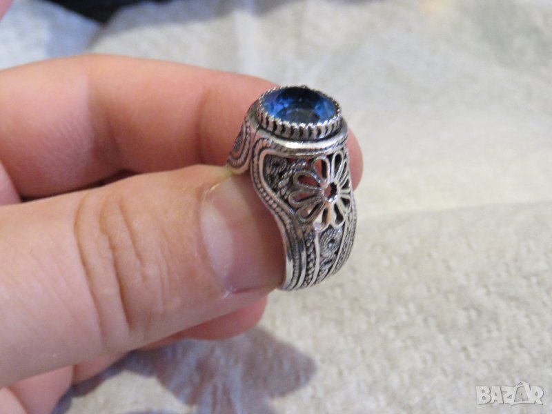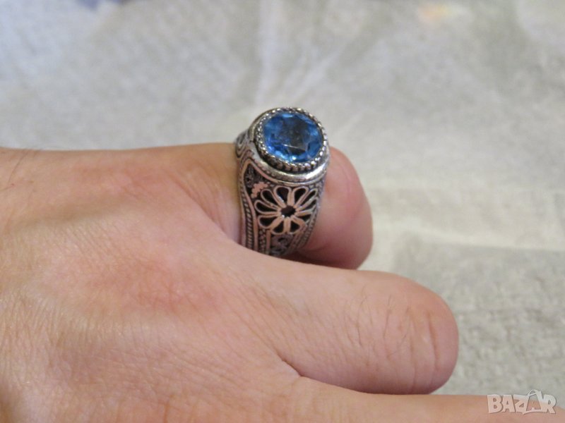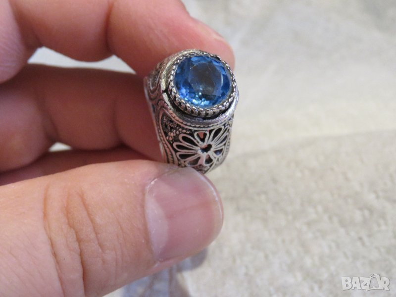 стар голям османски величествен пръстен с филигран син камък, турски сребро