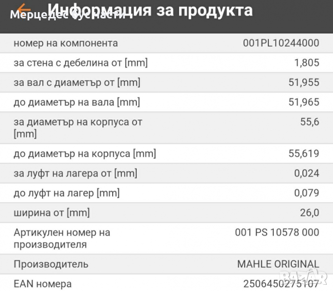 Мерцедес Т1 207-410 биелни лагери стандарт, снимка 1 - Части - 29458027 Мерцедес Т1 207-410 биелни лагери стандарт, снимка 2 - Части - 29458027 1/2