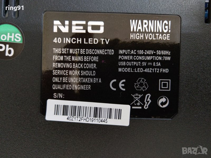 TV NEO LED-40Z1T2, снимка 1 - Части и Платки - 29460124 TV NEO LED-40Z1T2, снимка 2 - Части и Платки - 29460124 TV NEO LED-40Z1T2, снимка 3 - Части и Платки - 29460124 1/3