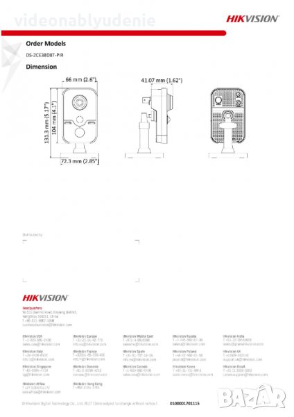Осветеност: 0.005 Lux в цветен режим, 0 Lux в черно-бял режим