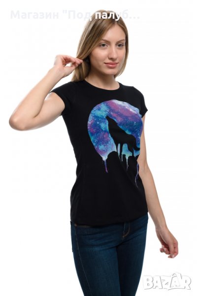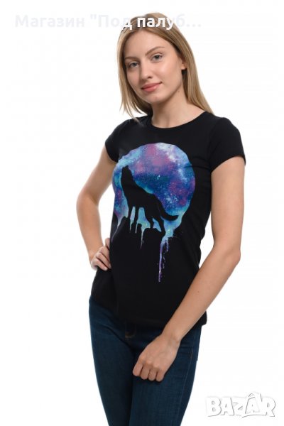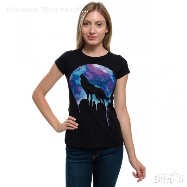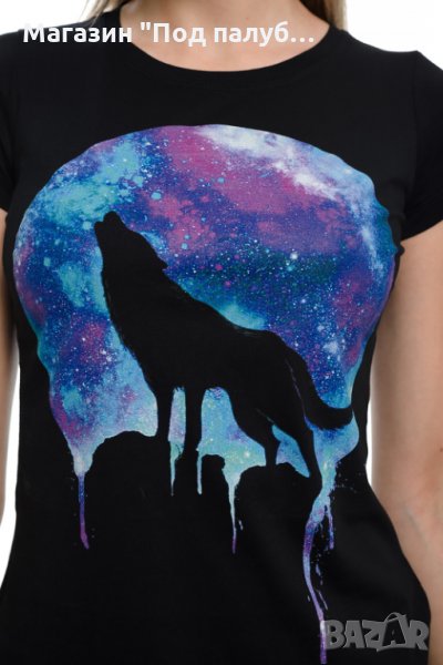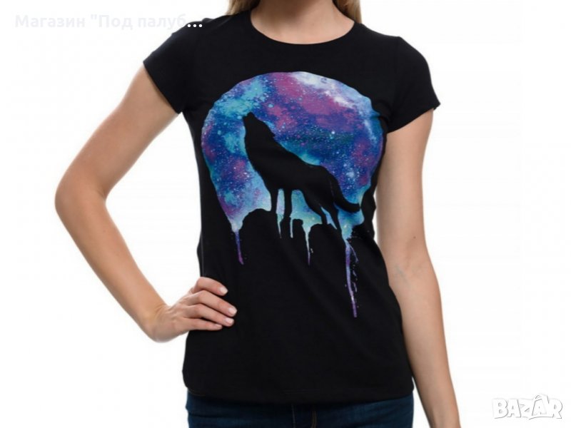 Нова дамска тениска с дигитален печат Вълк - Луна, Серия вълци