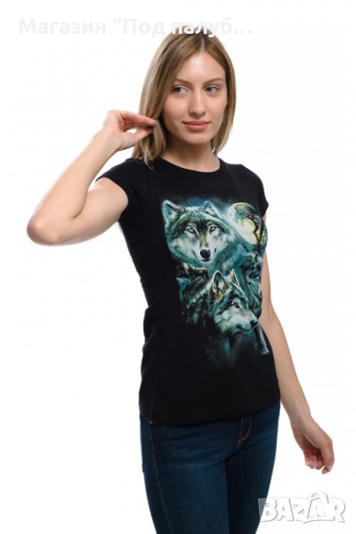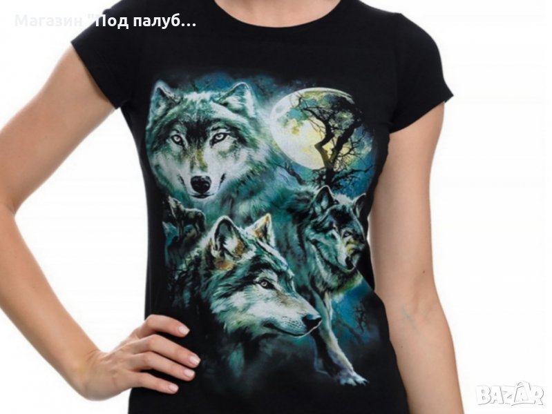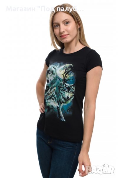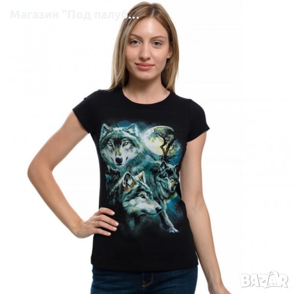 Нова дамска тениска с дигитален печат Вълци, пълнолуние, Серия вълци
