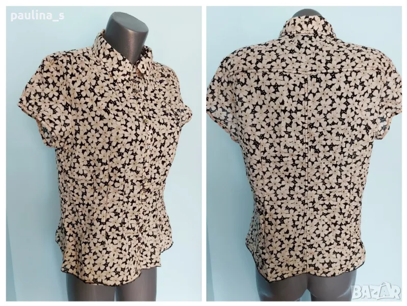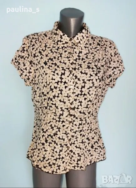 2️⃣. Колаж / XL / 2XL - Еластична брандова риза във флорален принт "sandwich_". Като нова. Цената е крайна 24,99лв / 12,5 евро. Изумително красива, елегантна риза с флорален принт. Копчетата са седефени, бастите са фиксирани с черни украсителни тегели. Изключително качествена изработка, гарантирана от бранда. Като нова, без дефекти и етикет!