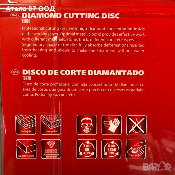 Дискът се използва при сухото рязане на бетон, железобетон, мрамор.