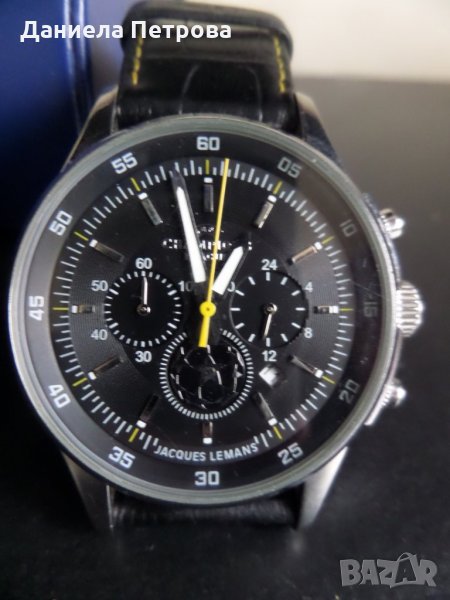 Продавам оригинален мъжки часовник хронограф JACQUES LEMANS, от серията им когато бяха спонсори на Uefa Champions League. В много добро състояние, работи перфектно, единствено каишката е за смяна. Характеристики: