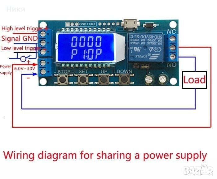 Реле за отлагане на стартовия модул за изключване и превключвател на задействащия цикъл