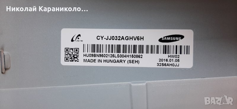 Продавам тв Samsung UE32J4510AW за части по причина-счупена матрица/CY-JJ032AGHV6H/.Редовни съответно: