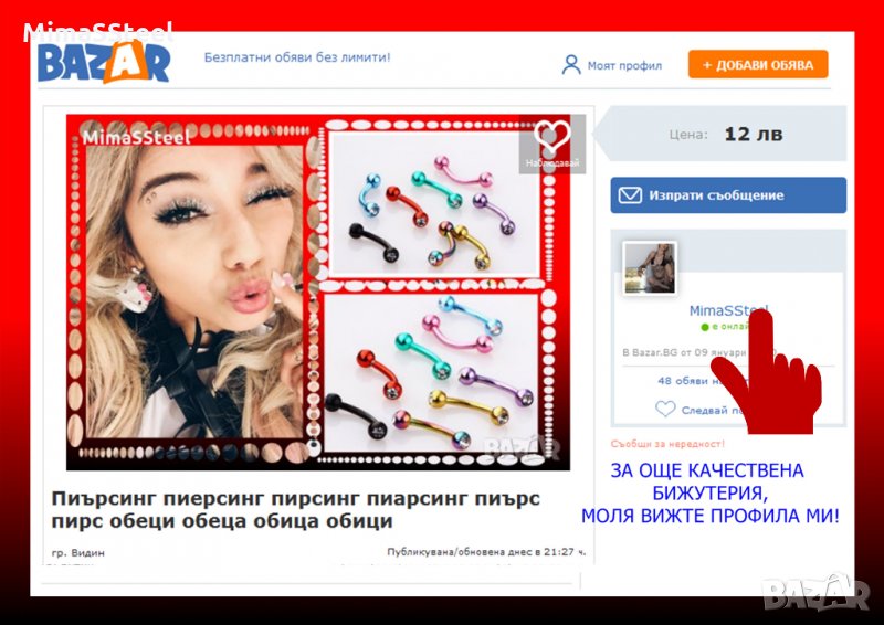 Пиърсинг пиерсинг пирсинг пиарсинг пиърс пирс обеци обеца обица обици → Обява 29495342