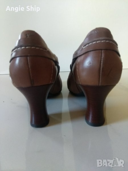 ОБУВКИ GEOX от естествена кафява кожа, с 5 см пета, кръгло стъпало, с малки признаци на употреба. Добро състояние.