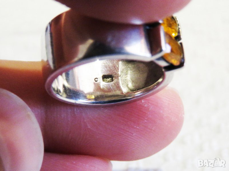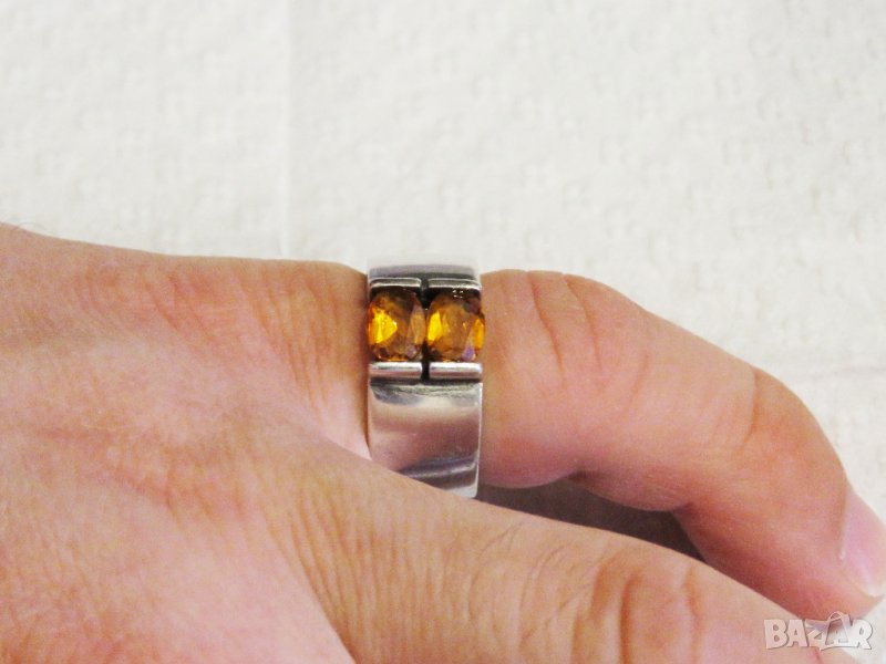 Стар марков мъжки сребърен пръстен с красиви желти сапфири сребро