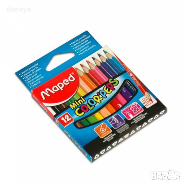 Цветни моливи за рисуване и оцветяване. Подострят се лесно и са с устойчив на натиск графит. Удобен захват, благодарение на триъгълното си тяло. Висококачествена дървесина. Отлична покривност. Моливите са къси, в комплект от 12 цвята.