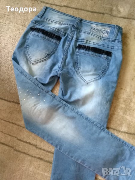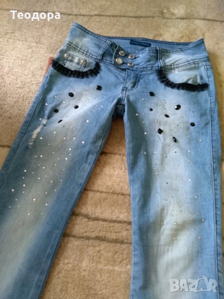 Ефектни дънки с камъчета и дантела. По етикет 28 р-р, но отговарят на 26 р-р