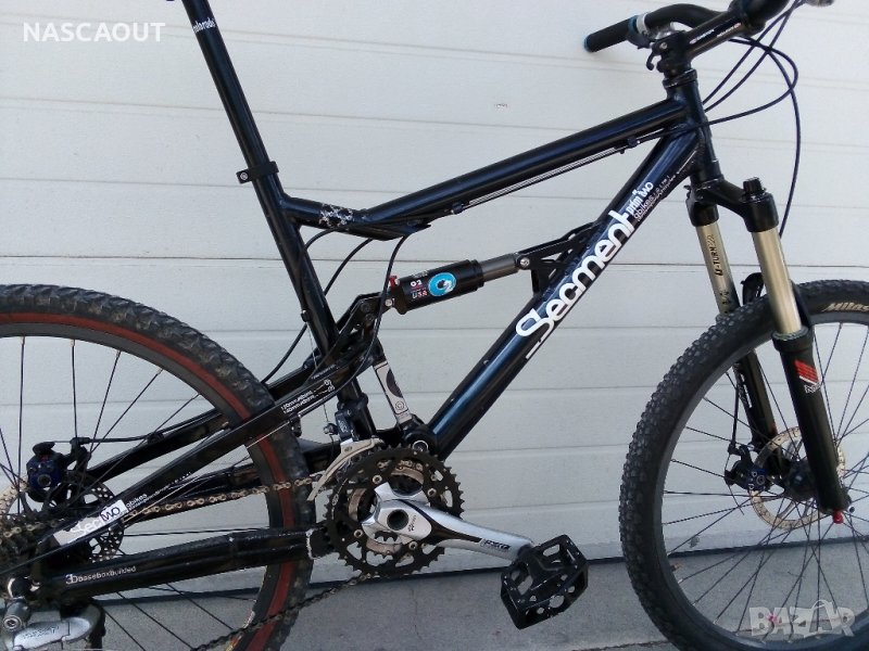 Алуминиев планински велосипед с предно и задно окачване използван но върви идеално.