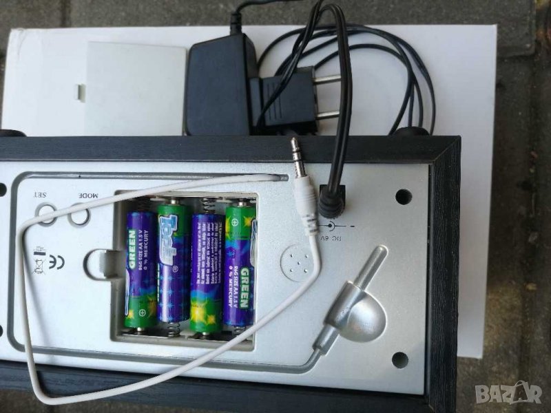 Транзистора работи на ток и с батерии, с часовник и аларма. Има два изхода за мобилен телефон, смартфон, горе стационарен за Айфон и други , от зад мека връска за всички други.
