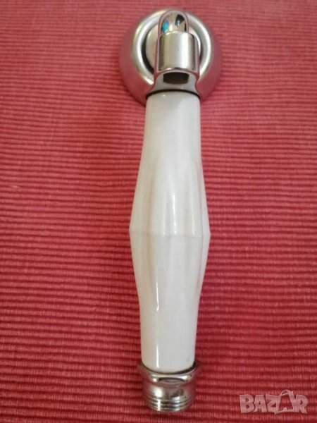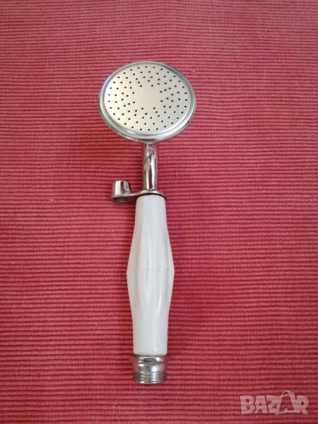 Стара винтидж, ретро душ слушалка за баня от порцелан и месинг, никелиран. Неразличима от нова, няма забележки.