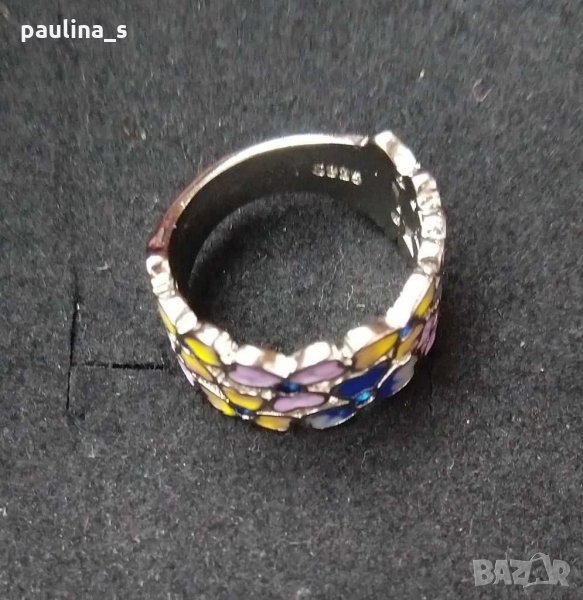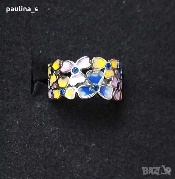 1. Пръстен ръчно рисуван емайл и кристали - проба s925. Сплавта е със 20микрона сребърно сребърно и родиево хипоалергично покритие, което е ефектът на бижуто. Всяко цвете е с различен цвят, изключително красив и ефектен, не потъмнява.