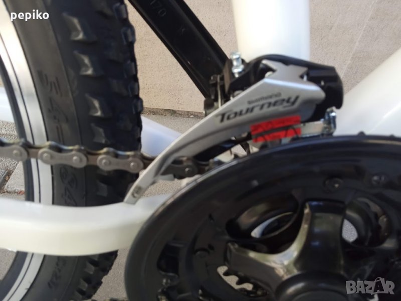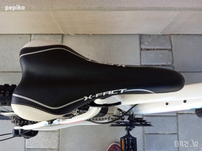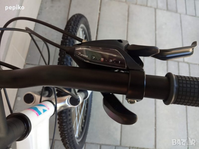 НОВ дамски спортен мтв велосипед ANELIA SPORT X-FACT 27,5 цола,алуминиева рамка 27.5 цола с 21 скорости,фиксирани комбинирани палцови команди SHIMANO V-BRAKE 3 х 7,метални курбели с пластмасово покритие,средно движение касета,преден отклонител SHIMANO TOURNEY,заден отклонител SHIMANO 35 TOURNEY,задни венци SHIMANO MF-TZ500,емайлирани главини,преден амортисьор ZOOM,алуминиево колче на седалката ZOOM,спортна седалка на релси,алуминиеви лапа и кормило,пластмасови педали,алуминиеви двойностенни усилени капли,никелирани спици,гуми със спортен грайфер МИТАС 27.5 х 2.1,размер на рамката 49 х 62 см.тегло 14.5 кг.много добър