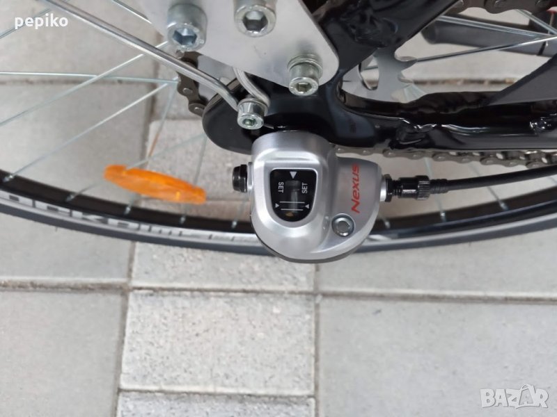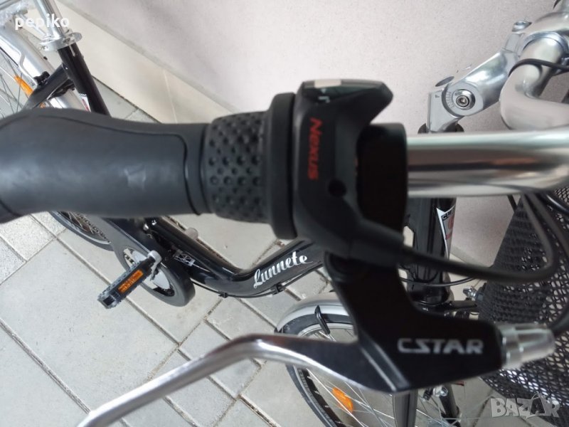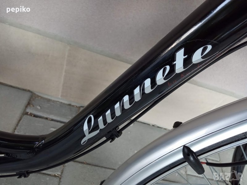 НОВ алуминиев велосипед LUNNETE 28 цола,олекотена алуминиева рамка 28 цола с 3 скорости,фиксирани превключватели SHIMANO NEXUS 3,алуминиеви курбели,пластмасови педали,пластмасов предпазител на веригата,пластмасови калници,заден отклонител SHIMANO NEXUS 3,задна главина с 3 вътрешни скорости SHIMANO NEXUS 3,предна динамоглавина SHIMANO NEXUS DH-C3000-3N-NP,алуминиев багажник,алуминиево колче на кормилото,удобна седалка с пружини на релси,алуминиево раздвижно колче на кормилото,алуминиево кормило,алуминиево лостче на спирачката,предна спирачка алуминиева вибрейк CZTAR,задна спирачка с контра,алуминиеви двойностенни усилени капли,никелирани спици,гуми с безшумен грайфер MITAS 28 х 1,75,осветление от пред и от зад с динамоглавина,автоматично сваляща се кошничка от пред, размер на рамката 51 х 61 см.тегло 14.6 кг.отличен ход,много добър велосипед.