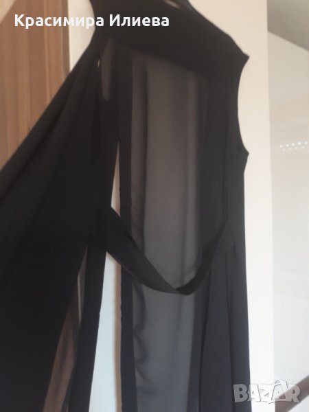 Екстравагантен елек от вискоза с цепки,без зокопчаване.Купен от сайта Modivo за 130лв.Без забележки. Има колан, много шикозен.Размерът е One size,предницата е по плътна и пада тежко, а отзад материята е по тънка,прозрачна,но пак пада тежко