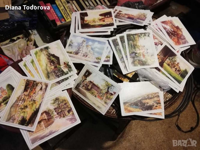 Картичките са нови с изгледи от България и могат да се слат и в рамки, много са оригинални.цената е за бр. За 10бр по 4лв,за 20бр по 3лв.,за 30бр.по 2лв.,за 40 бр.по 1.лв.Ако се вземат всички по, 0.80ст.