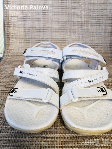 Изключително удобни сандали,предвидени са за всяко стъпало-лепки и ластички коригират и фиксират стъпалото добре,като задната каишка отвътре е с текстил,а цялата стелка е ортопедична,с извивки,за да се стъпва органично.размерът е 38,но тъй като цялата стелка е 26 см-може да стане и за 39 размер.поддържат се лесно-перат се в пералнята,неубиваеми са.
