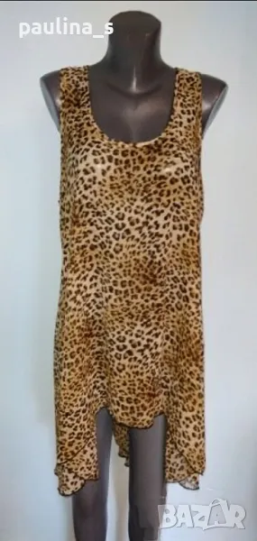 2. Колаж / XL / 3XL - "zenobia" Туника в леопардова шарка копринена органза. Цената е крайна 39,99лв. Ефирна туника с леопардов принт с издължена задна част и открит гръб. Материята е копринена органза - немачкаема. Моделът е специален и много готин.