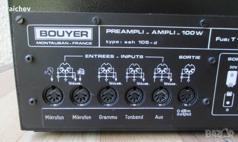 BOUYER G+M Electronik – Качествен 100 волтов усилвател за фонова музика. Миксер и стъпало в един корпус. Входове за микрофон,грамофон,магнетофон
