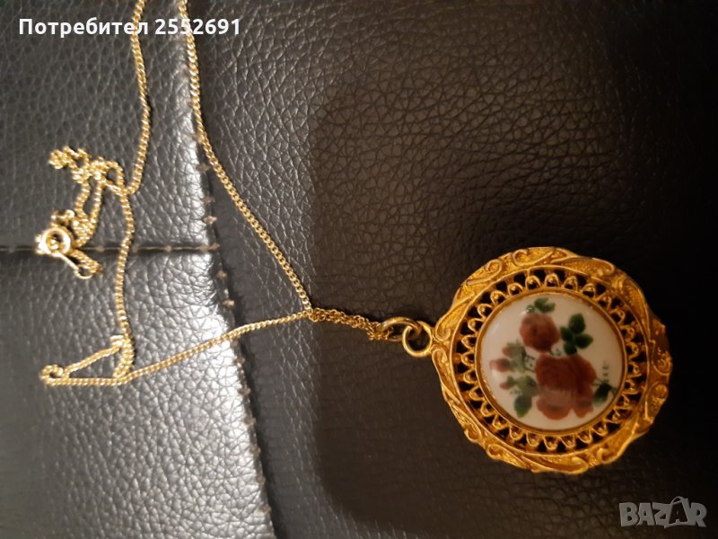 Колие с позлата и порцелан. Диаметъра е 3,5см.