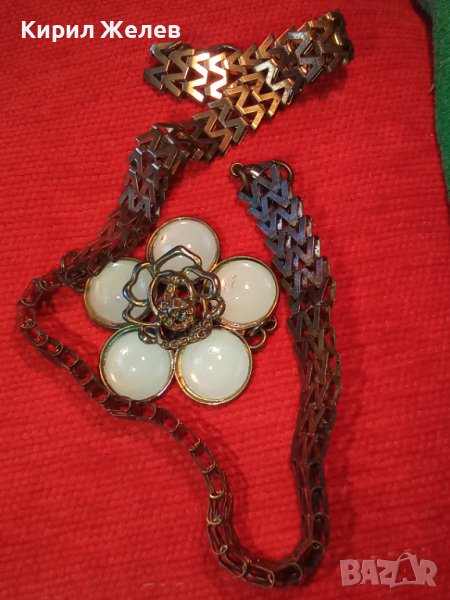 ВИНТИДЖ БРОНЗОВО КОЛИЕ МЕДАЛЬОН с ЛУНЕН КАМЪК 12572
