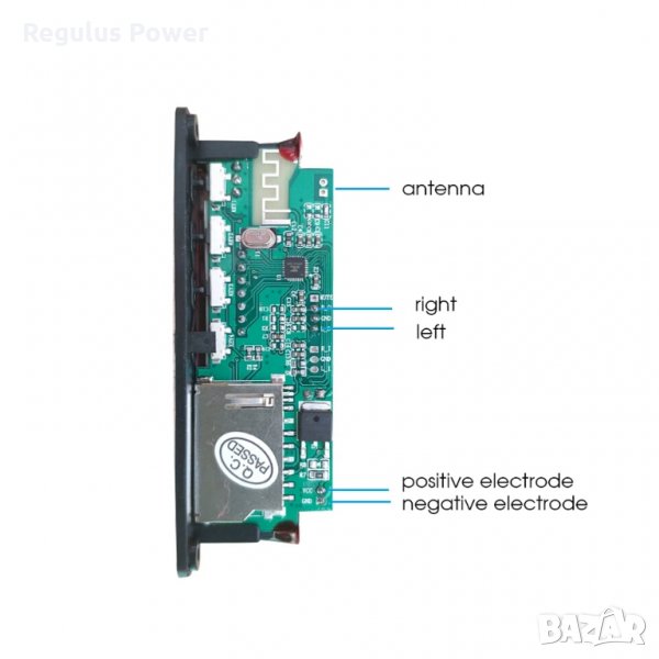 Режими : FM/AUX/bluetooth 5.0/SD card до 32 Gb(не е включена)