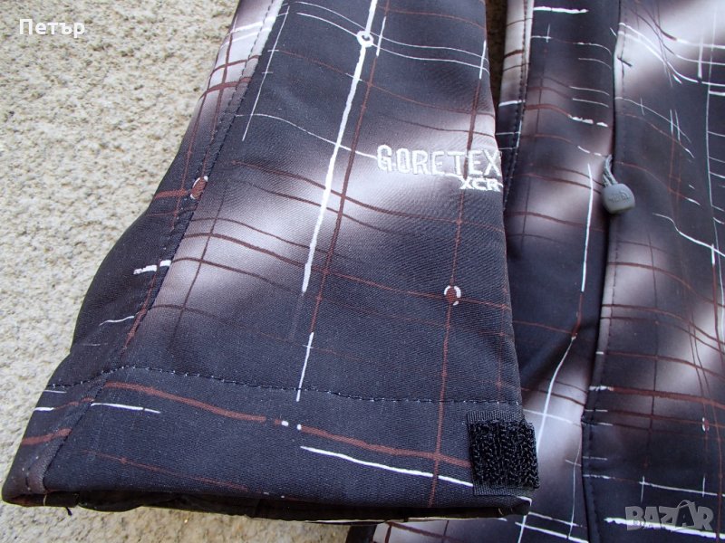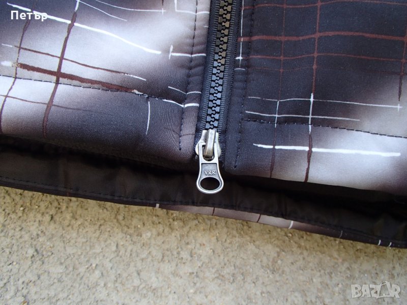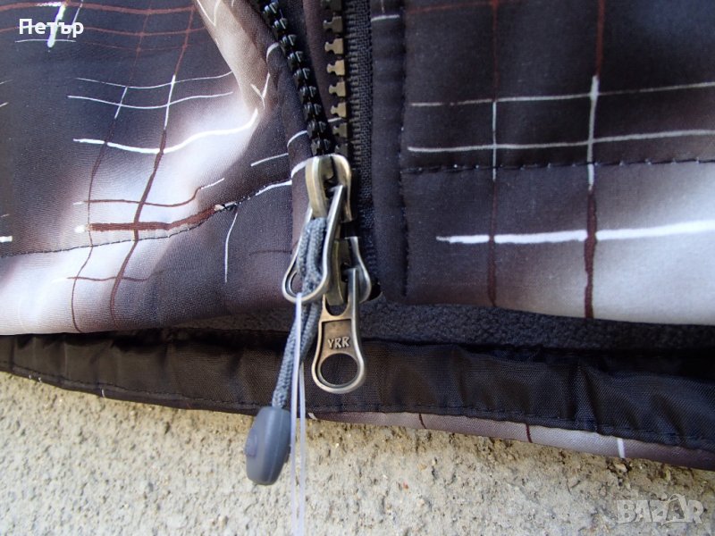 Продавам ново дамско качествено яке софт шел The North Face. Материалът е трислоен: тънък полар+мембрана водоустойчива+разтеглив бързосъхнещ слой, залепени заедно. Шевовете са лепени. Цветът е черен с бели и кафяви черти. Качулката се откача. Има два предни джоба с цип, едно джобче на левия ръкав и два отворени вътрешни джоба. Качулката може да се пристяга, както и якето долу. Циповете са YKK, а водачите са два - горе и долу. Ето параметри в см на :