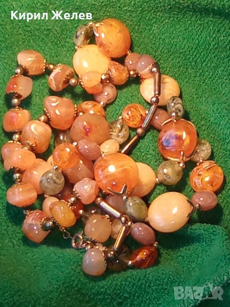ХАЛЦЕДОН и ЯСПИС СТАРО БРОНЗОВО ПОЗЛАТЕНО КОЛИЕ 66781