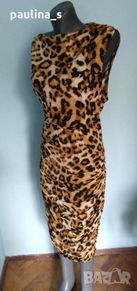 1️⃣. XL / 3XL - "Empire" Една бройка. Цената е крайна 89,99лв / 45 евро. Изумителна парти рокля в леопардов принт, като нова е, без дефекти и етикет. Материята е еластична и покрива няколко номера, долната част е с оформящ хастар, прибира и оформя тялото в секси аутфит. Моделът е асиметричен в горната разменна част с падащо и с голо рамо. Дрехата е много впечатлителна, със идентификационен номер. Ако Ви е скъпа, подминавате. Цената е минимална и не се коментира!!