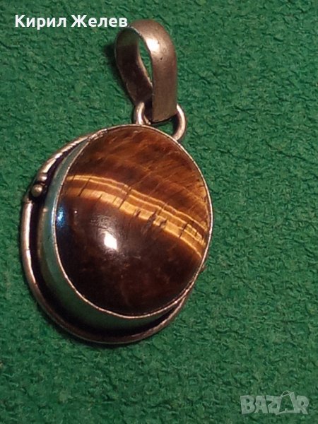 ПРЕКРАСЕН СТАР ПОСРЕБРЕН ТИГРОВО ОКО МЕДАЛЬОН 12263