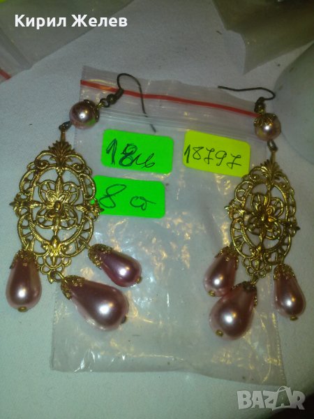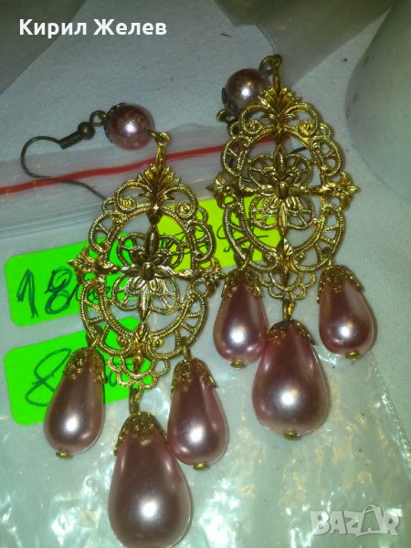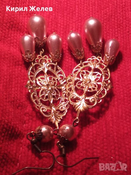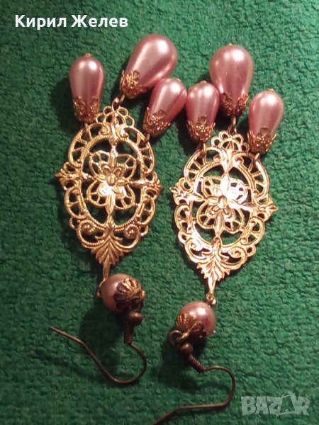 РОЗОВИ ПЕРЛИ ВИНТИДЖ АРТ ДЕКО ФИЛИГРАННИ БРОНЗ ПОЗЛАТЕНИ ОБЕЦИ 18797