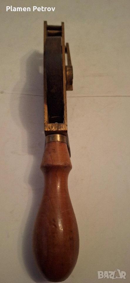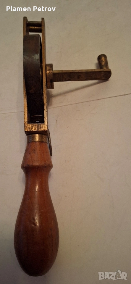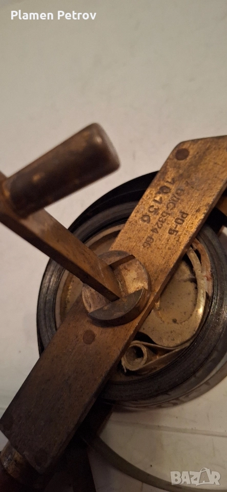 Стара българска рулетка 5метра с дървена дръжка, корпусът и ръкохватката са от месинг