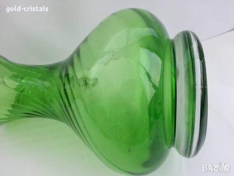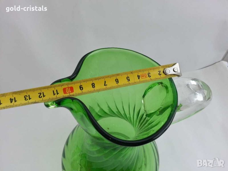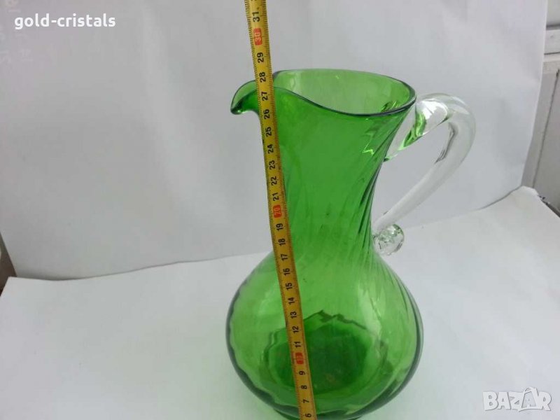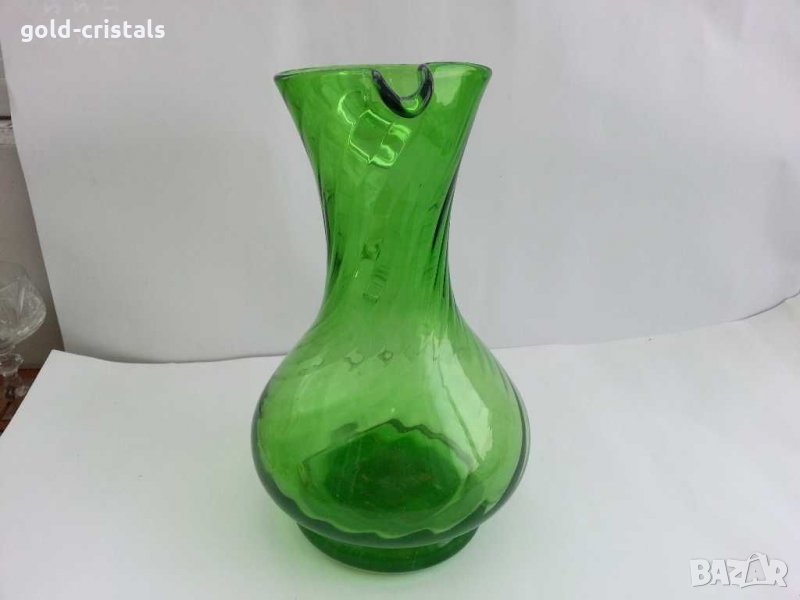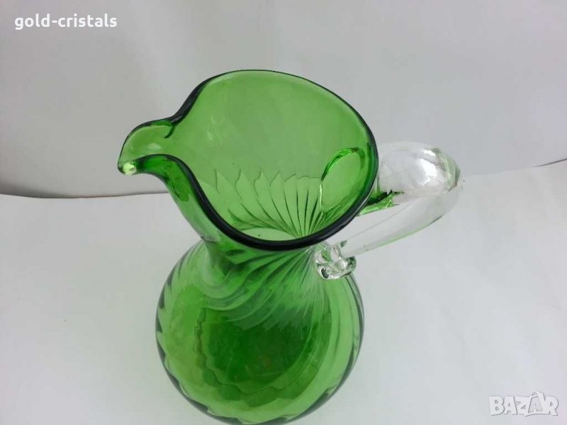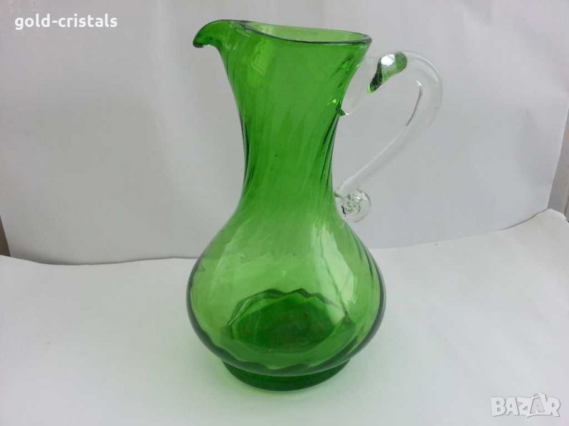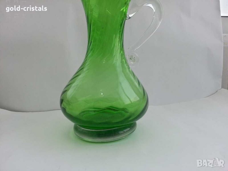 Стара стъклена кана ръчна изработка дебело и тежко дъно цветно зелено стъкло кристално стъкло тип мурано тежи около 2кг ретро арт декор винтидж колекция антикварна старинна стари антикварни предмети обзавеждане за дома и семейството подходящи за подарък за ценители и колекционери