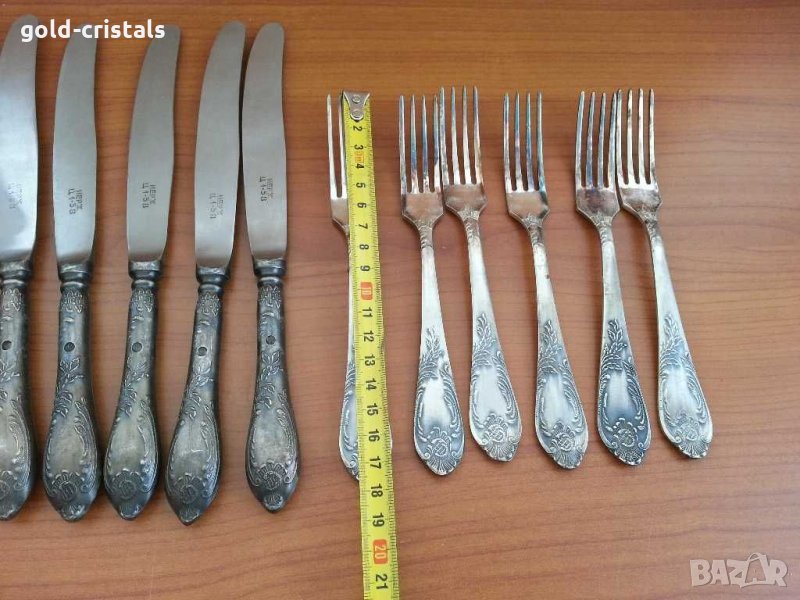 Руски прибори 6бр ножове и 6бр вилици 18см маркирани мнц сервиз комплект сет лот ретро арт декор винтидж колекция стари старинни съветски ссср стари антикварни предмети обзавеждане за дома и семейството подходящи за подарък за ценители и колекционери